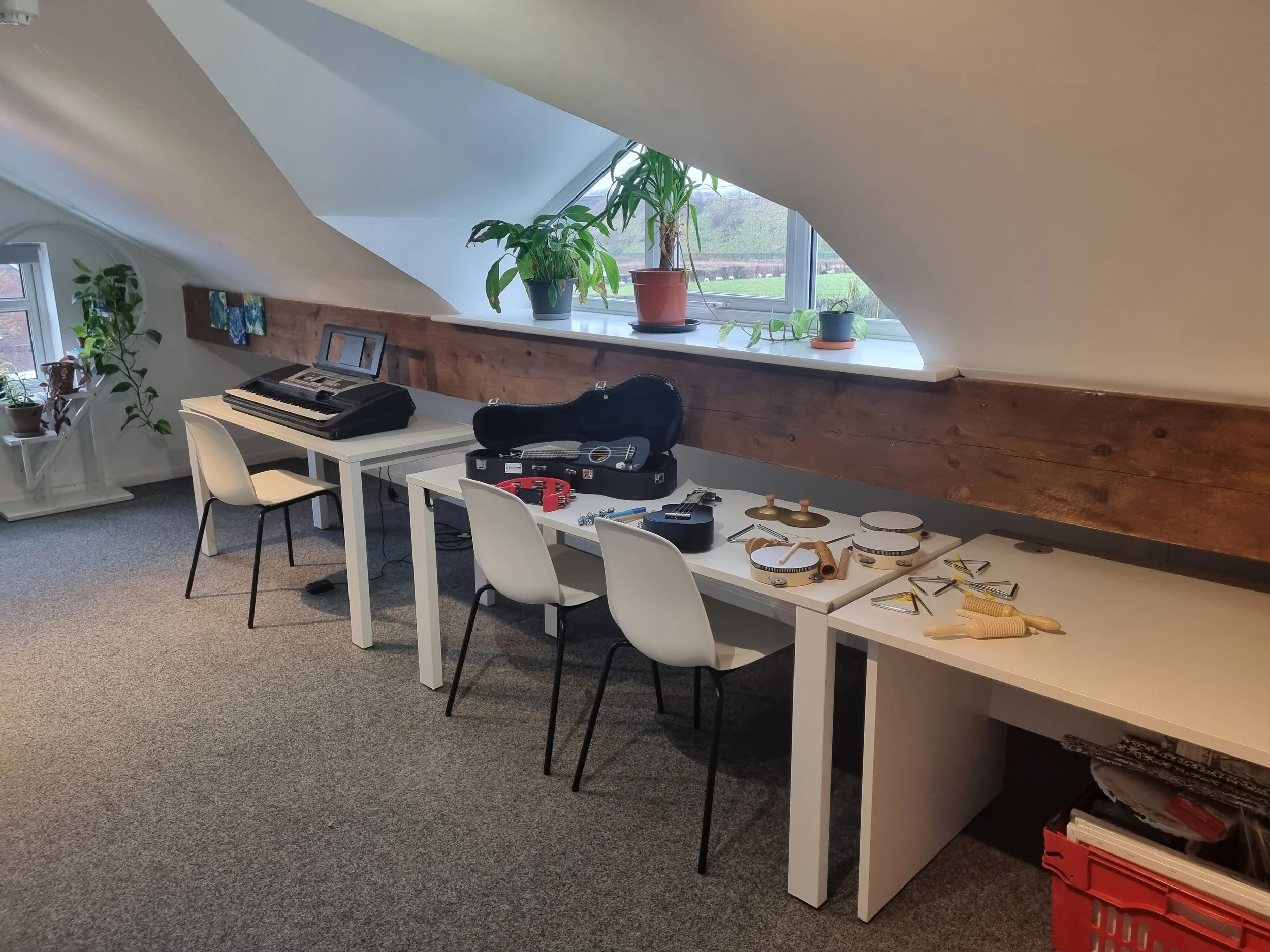Our Creative Room is a calm, inspiring space where art, music, and drama come together to support self-expression and emotional development. Natural light and open workstations encourage creativity and exploration, allowing learners to engage with a wide range of materials and instruments at their own pace. This environment promotes Valuing yourself by offering a safe outlet for feelings and ideas, while shared creative experiences support Helping others and Respecting others through collaboration and performance. By encouraging experimentation and imagination, the Creative Room nurtures Trying your best and an Inspiring attitude, helping pupils to engage positively and confidently in their learning.