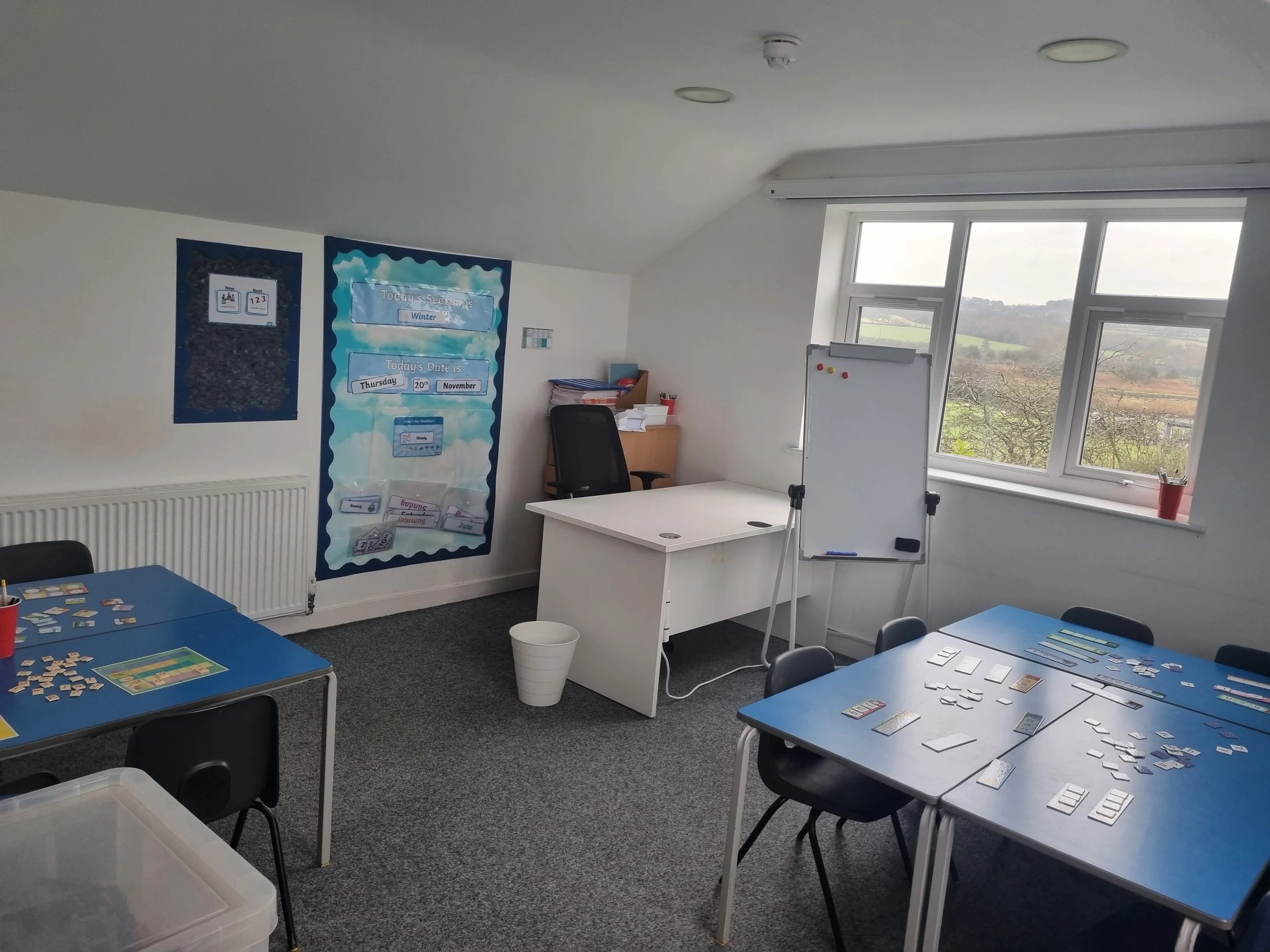 Our KS2 classroom is a calm and structured space where older pupils can focus on developing their academic skills while building independence and resilience. The layout encourages both group collaboration and individual learning, supported by visual resources and clear routines. Learners are encouraged to take ownership of their progress, showing perseverance and pride in their achievements. This room reflects Trying your best and Respecting others — fostering teamwork, focus, and a sense of shared purpose in learning.